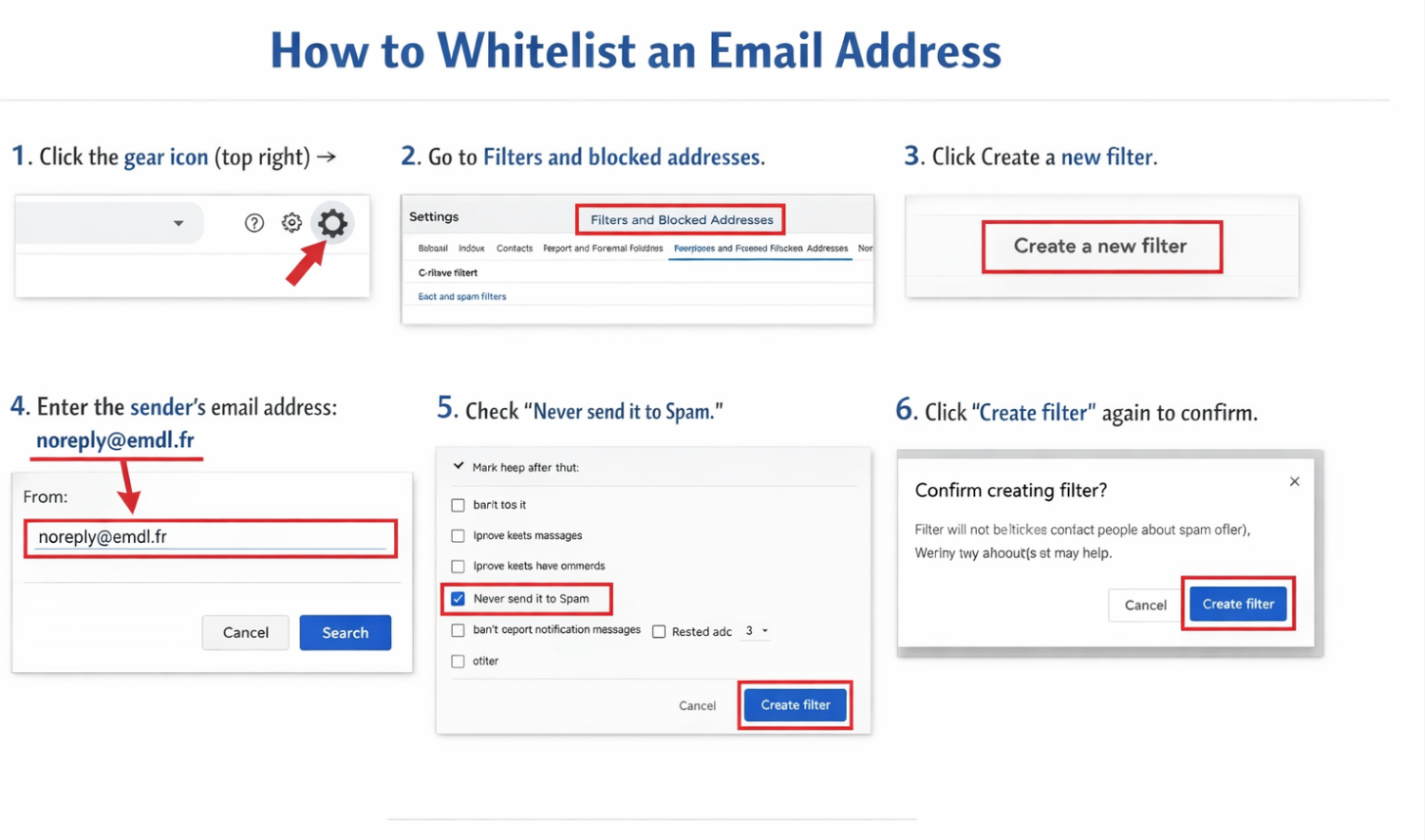 To ensure proper receipt of emails sent by the platform, particularly those related to account activation and password reset, we recommend that you check your email settings and follow the steps described below.