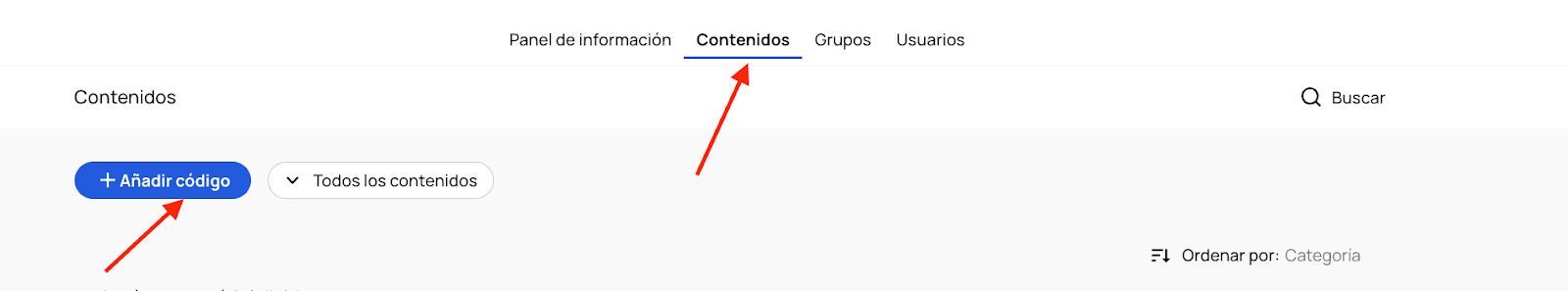 Si ya tienes productos en tu pantalla de inicio y deseas añadir más códigos, haz clic en la pestaña Contenidos, luego en el botón azul + Añadir código .